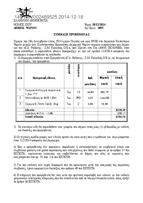 2. Διακήρυξη του έργου "Κατασκευή σταθμού μεταφόρτωσης απορριμμάτων Δήμου Ψαρών"