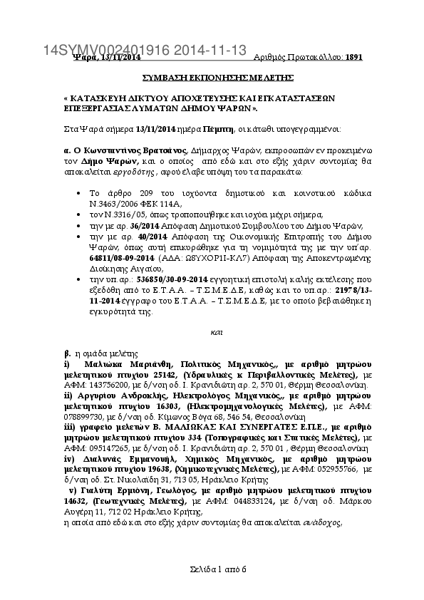 1. ΚΑΤΑΣΚΕΥΗ ΔΙΚΤΥΟΥ ΑΠΟΧΕΤΕΥΣΗΣ ΚΑΙ ΕΓΚΑΤΑΣΤΑΣΕΩΝ ΕΠΕΞΕΡΓΑΣΙΑΣ ΛΥΜΑΤΩΝ ΔΗΜΟΥ ΨΑΡΩΝ