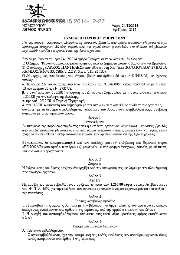 Αναζήτηση σε προκηρύξεις και συμβάσεις για: