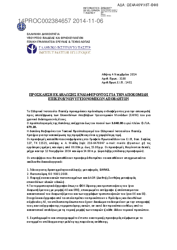 Αναζήτηση σε προκηρύξεις και συμβάσεις για: