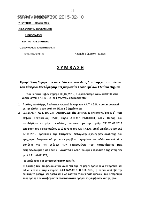2. Προμήθεια σιγαρέτων και ειδών καπνού ιδίας δαπάνης κρατουμένων ΚΑΤΚ Ελεώνα Θηβών