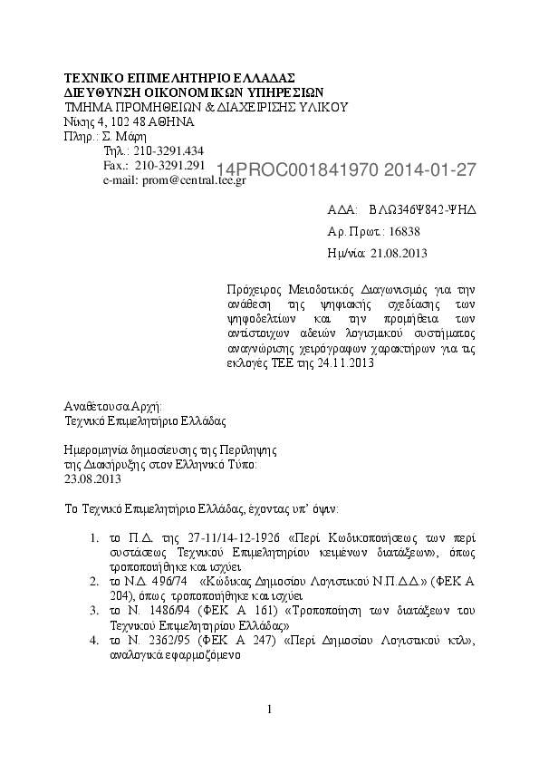 7. Ψηφιακή Σχεδίαση Ψηφοδελτίων & Άδειες Λογισμικού για τις εκλογές ΤΕΕ στις 24.11.2013