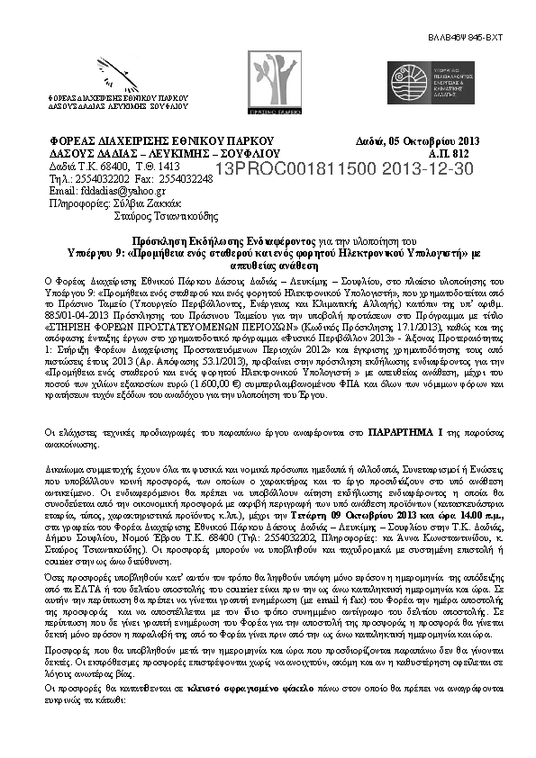 1. ΤΕΥΧΟΣ ΠΡΟΚΗΡΥΞΗΣ Ανοιχτού Διεθνούς Διαγωνισμού για την ανάθεση υπηρεσιών στα πλαίσια του Υποέργου 3 «ΚΑΤΑΓΡΑΦΗ ΚΑΙ ΠΑΡΑΚΟΛΟΥΘΗΣΗ ΤΩΝ ΤΥΠΩΝ ΟΙΚΟΤΟΠΩΝ ΚΑΙ ΤΩΝ ΕΙΔΩΝ ΧΛΩΡΙΔΑΣ ΚΑΙ ΠΑΝΙΔΑΣ ΤΩΝ ΟΔΗΓΙΩΝ 92/43 ΚΑΙ 79/409 » της Πράξης «ΠΡΟΣΤΑΣΙΑ...