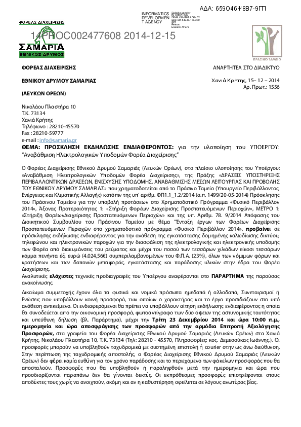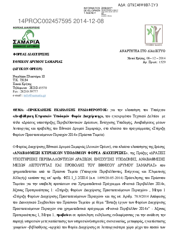 Αναζήτηση σε προκηρύξεις και συμβάσεις για: