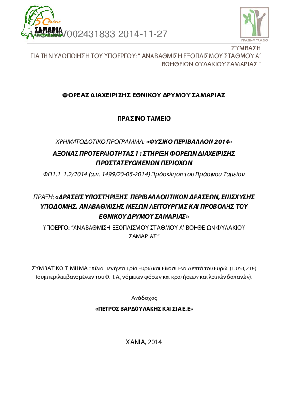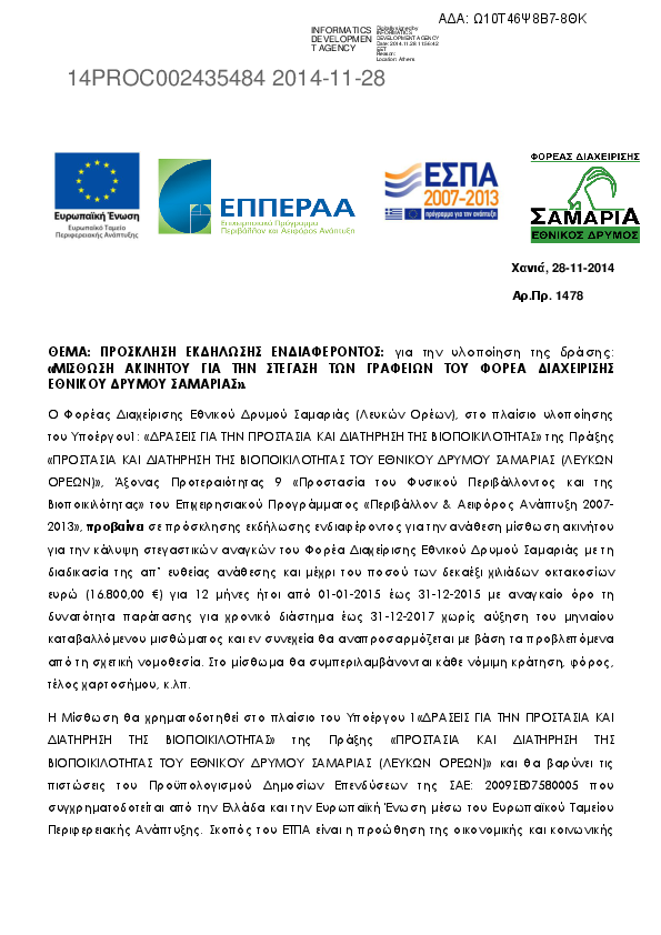 5. ΜΙΣΘΩΣΗ ΑΚΙΝΗΤΟΥ ΓΙΑ ΤΗΝ ΣΤΕΓΑΣΗ ΤΩΝ ΓΡΑΦΕΙΩΝ ΤΟΥ ΦΟΡΕΑ ΔΙΑΧΕΙΡΙΣΗΣ ΕΘΝΙΚΟΥ ΔΡΥΜΟΥ ΣΑΜΑΡΙΑΣ