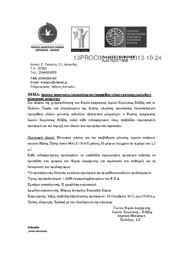 1. Τεύχος προκήρυξης ανοιχτού διαγωνισμού για την ανάθεση υπηρεσιών 1)δημιουργίας έντυπου υλικού ενημέρωσης ευαισθητοποίησης του Φορέα Διαχείρισης λιμνών Κορώνειας Βόλβης και 2) παραγωγής ωριαίου έργου τεκμηρίωσης (ντοκιμαντέρ)