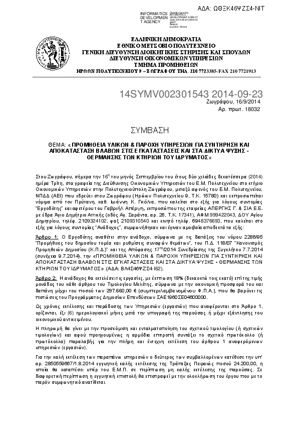 Αναζήτηση σε προκηρύξεις και συμβάσεις για: