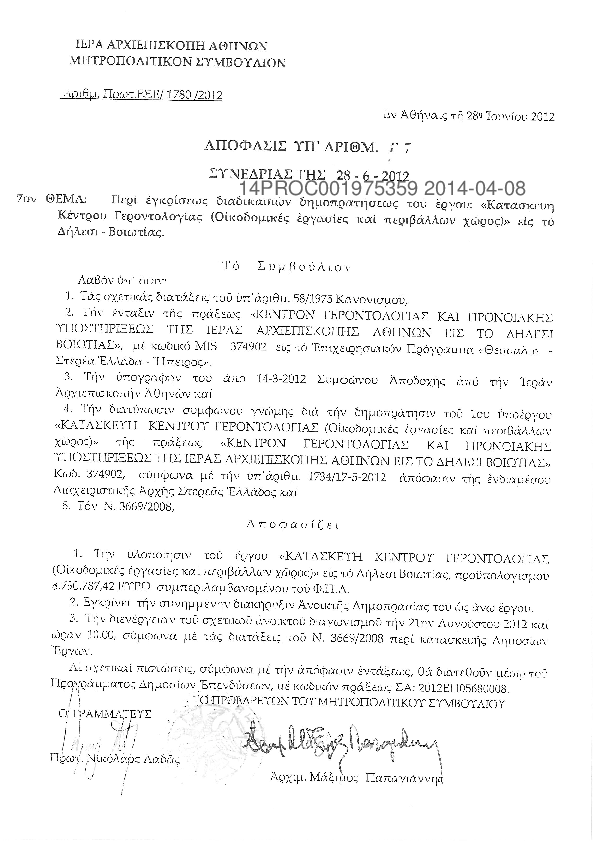 7. ΑΚΥΡΩΜΕΝΗ - «Κατασκευή του Κέντρου Γεροντολογίας (Οικοδομικές Εργασίες & περιβάλλων χώρος)»