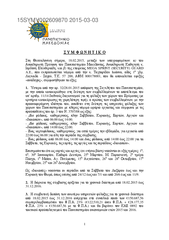 5. ΦΥΛΑΞΗ ΤΩΝ ΚΤΗΡΙΩΝ ΤΟΥ ΠΑΝΕΠΙΣΤΗΜΙΟΥ ΜΑΚΕΔΟΝΙΑΣ