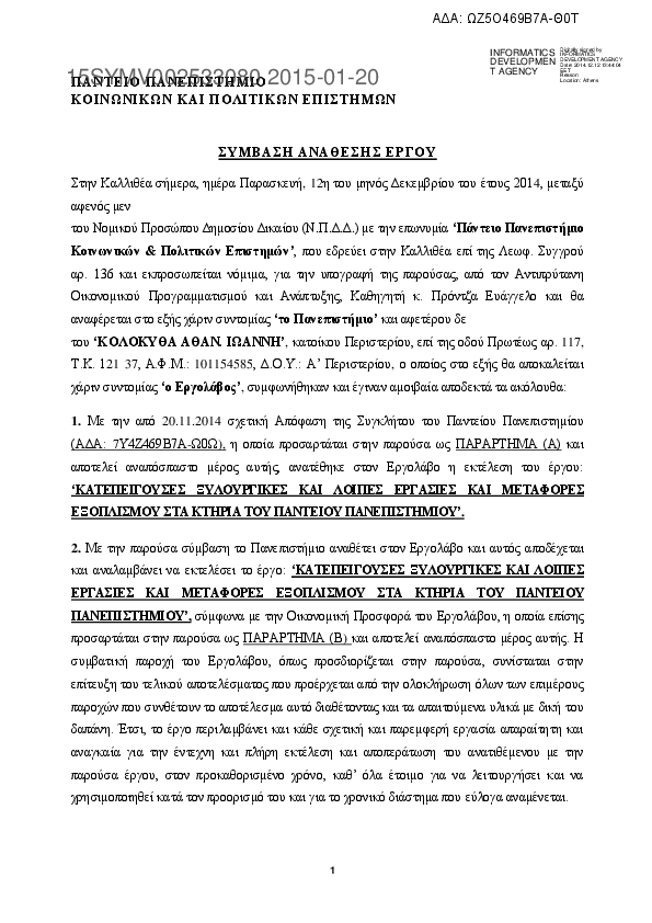 Αναζήτηση σε προκηρύξεις και συμβάσεις για: