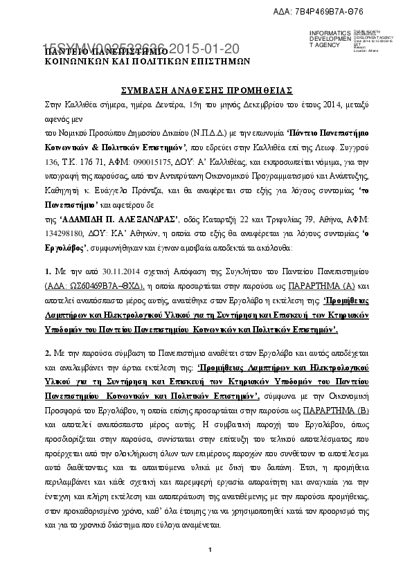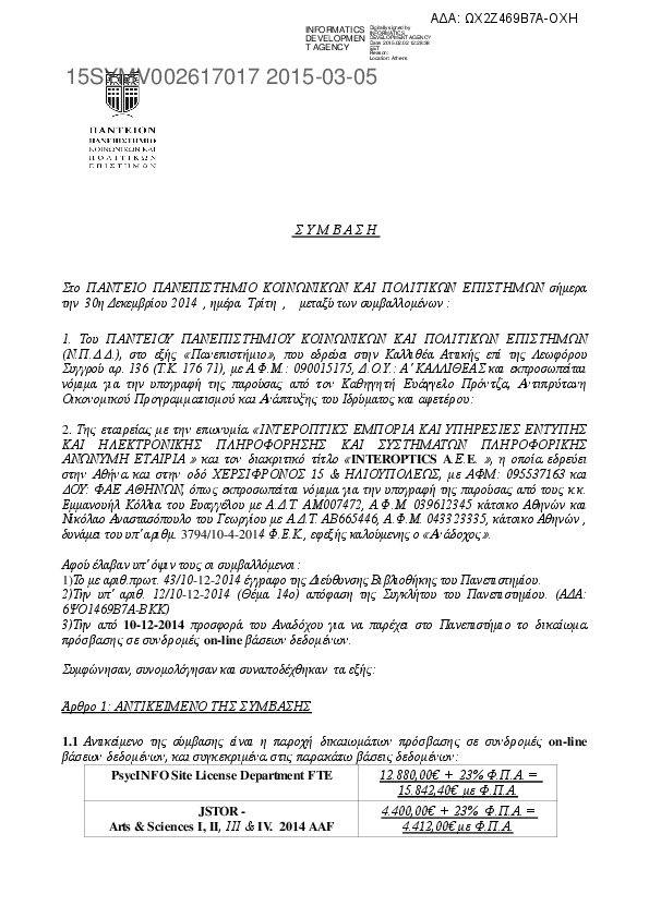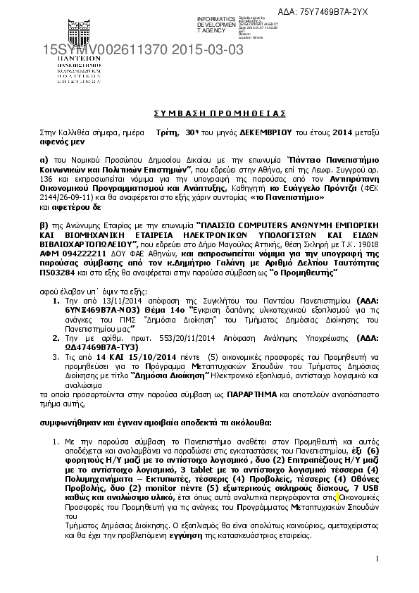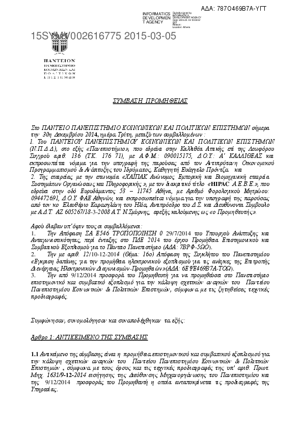5. ΣΥΜΒΑΣΗ ΓΙΑ Ηλεκτρονικό εξοπλισμό, αντίστοιχο λογισμικό και αναλώσιμα για ΠΜΣ Τμ.Δ.Δ.