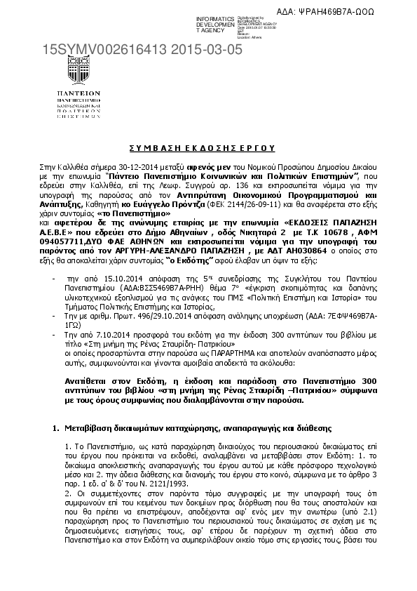 6. έκδοση παράδοση στο Πανεπιστήμιο 300 αντιτύπων του βιβλίου «στη μνήμη της Ρένας Σταυρίδη –Πατρικιου