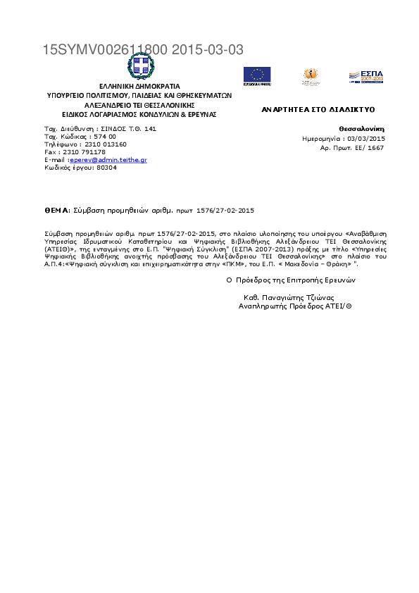 7. Αναβάθμιση Υπηρεσίας Ιδρυματικού Καταθετηρίου και Ψηφιακής Βιβλιοθήκης Αλεξάνδρειου ΤΕΙ Θεσσαλονίκης