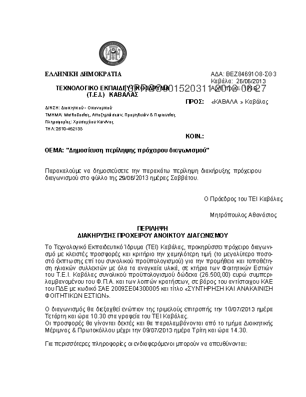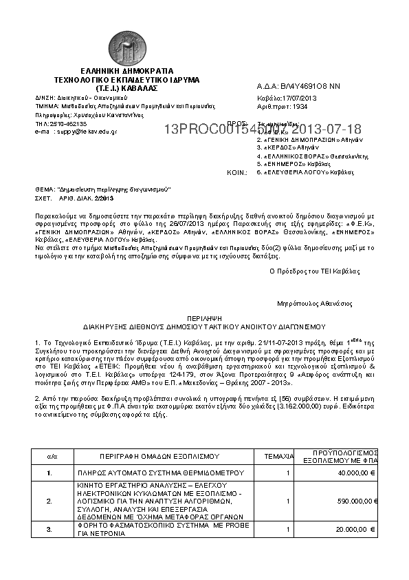 1. ΕΤΕΙΚ: Προμήθεια νέου ή αναβάθμιση εργαστηριακού και τεχνολογικού εξοπλισμού ΤΕΙ Καβάλας