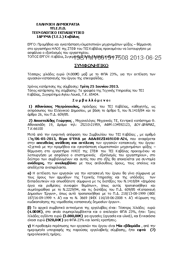 4. Κλιματιστικά για το εργαστήριο ΗΛΟΞ του ΤΕΙ Καβάλας