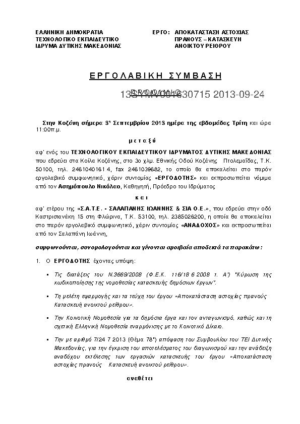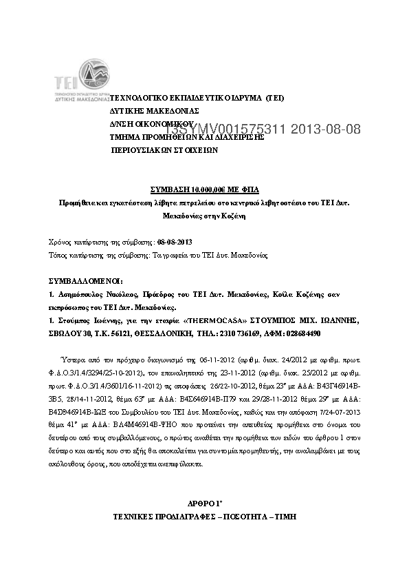 9. Προμήθεια και εγκατάσταση λέβητα πετρελαίου στο κεντρικό λεβητοστάσιο του ΤΕΙ Δυτ. Μακεδονίας στην Κ