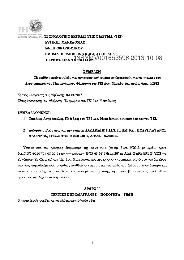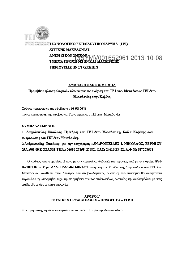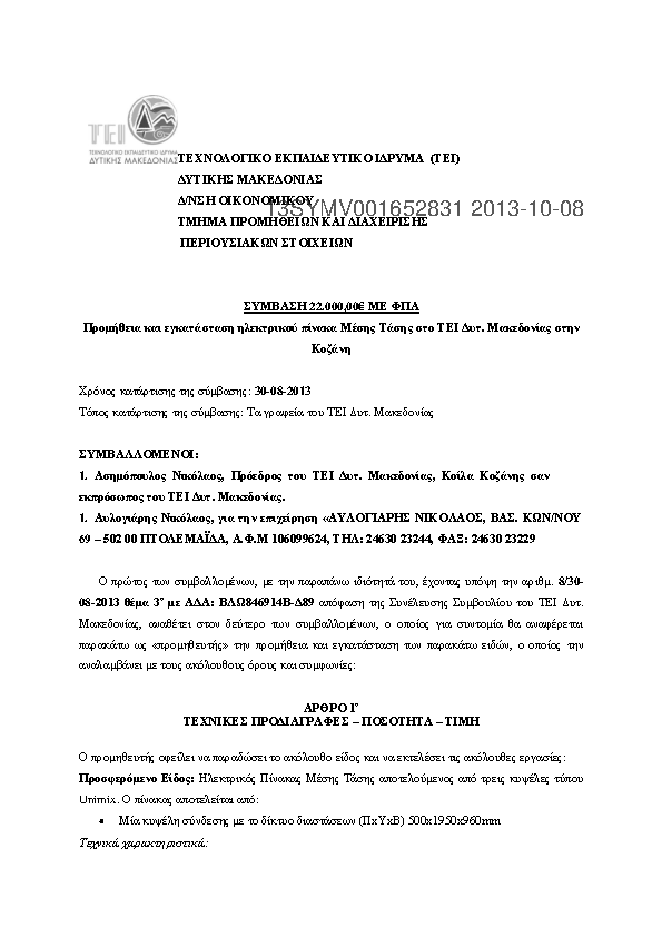 2. Προμήθεια ηλεκτρολογικών υλικών για τις ανάγκες του ΤΕΙ Δυτ. Μακεδονίας ΤΕΙ Δυτ. Μακεδονίας στην Κοζ