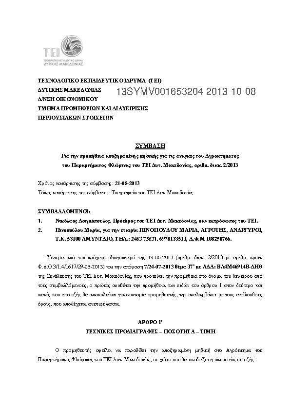 Αναζήτηση σε προκηρύξεις και συμβάσεις για: