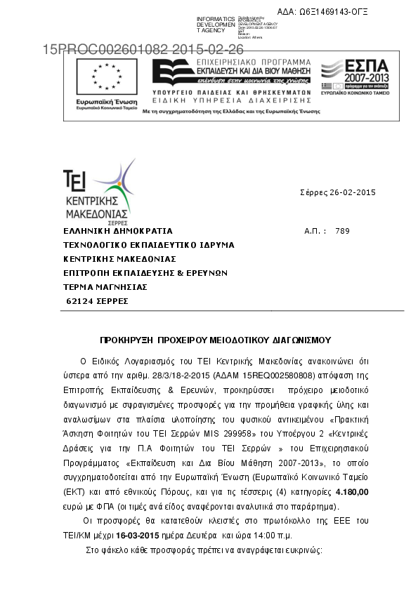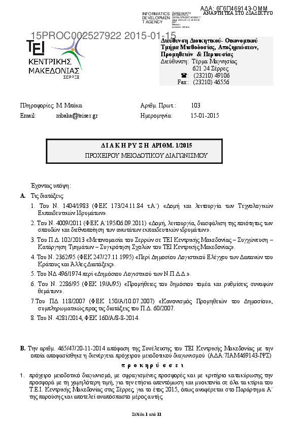 Αναζήτηση σε προκηρύξεις και συμβάσεις για: