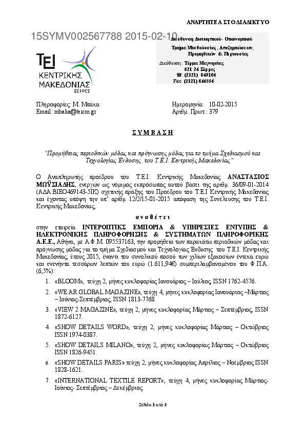 5. Προμήθεια περιοδικών μόδας και πρόγνωσης μόδας για το τμήμα Σχεδιασμού &Τεχνολογίας Ένδυσης TEI KM