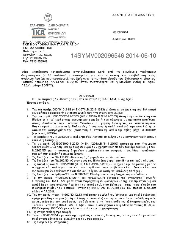 Αναζήτηση σε προκηρύξεις και συμβάσεις για: