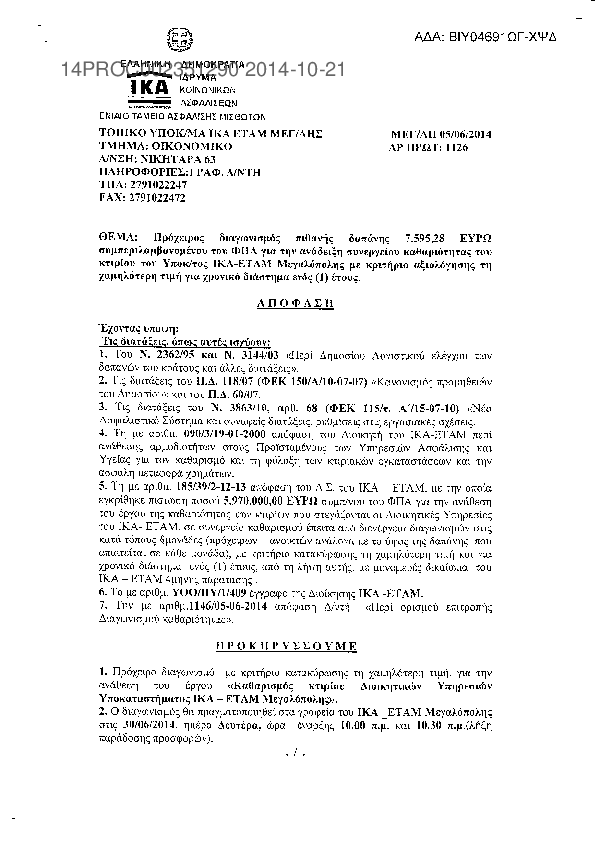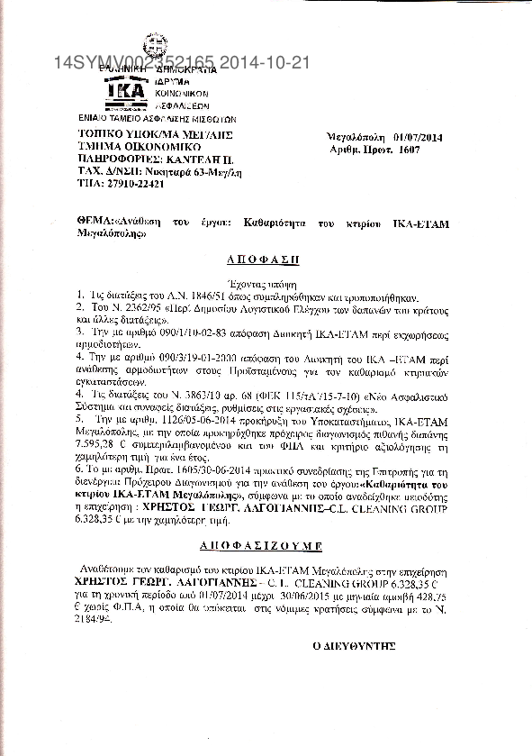 9. Σύμβαση παροχής υπηρεσιών ΙΚΑ-ΕΤΑΜ Μεγαλόπολης