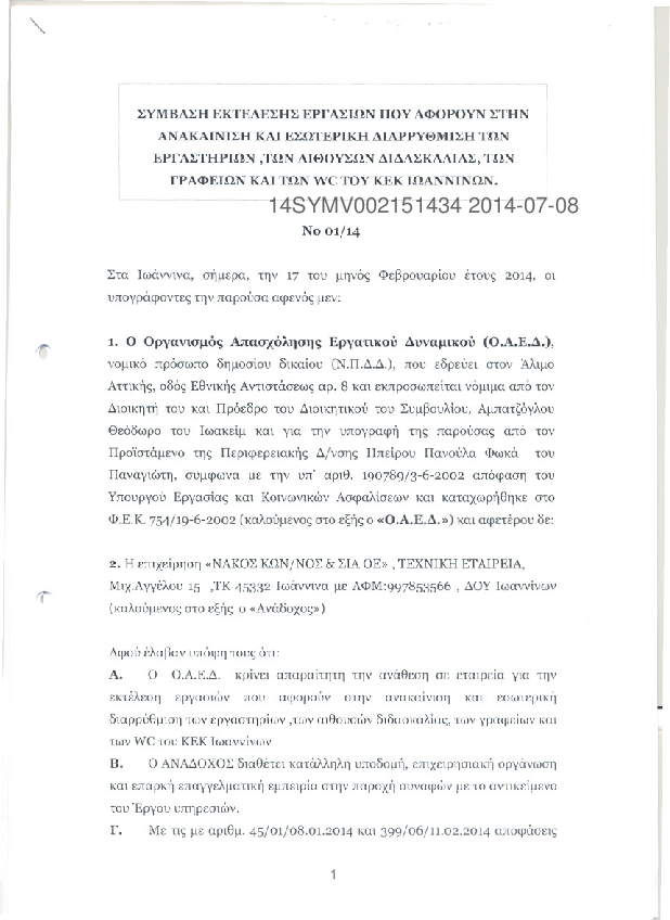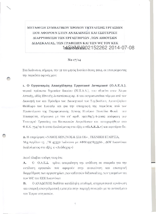 10. ΣΥΜΒΑΣΗ ΕΚΤΕΛΕΣΗΣ ΕΡΓΑΣΙΩΝ ΠΟΥ ΑΦΟΡΟΥΝ ΣΤΗΝ ΑΝΑΚΑΙΝΙΣΗ ΚΕΚ ΙΩΑΝΝΙΝΩΝ (ΜΕΤΑΘΕΣΗ ΣΥΜΒΑΤΙΚΟΥ ΧΡΟΝΟΥ)