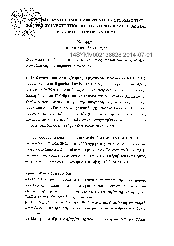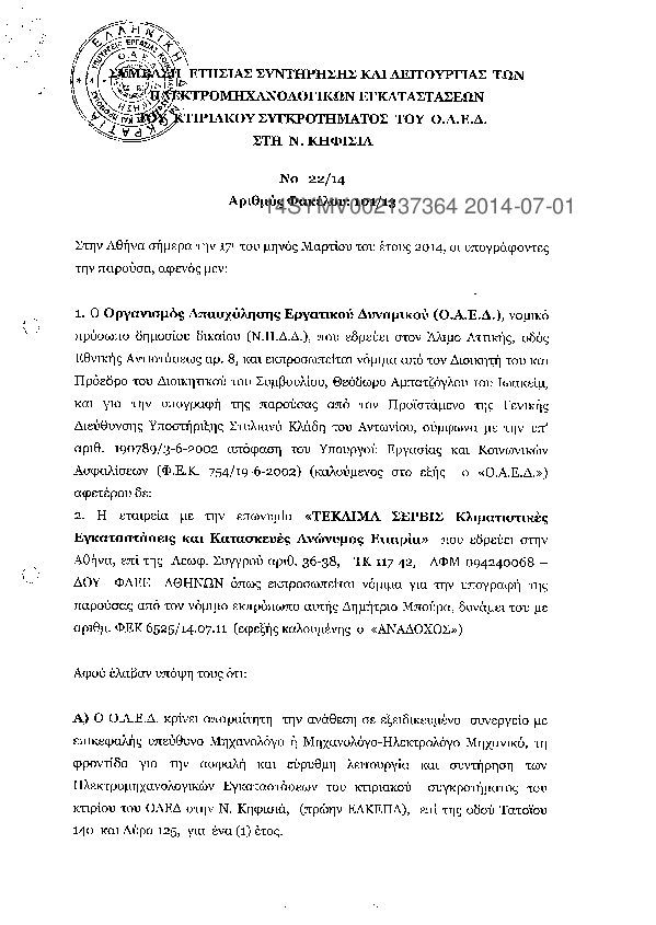 6. ΕΤΗΣΙΑ ΣΥΝΤΗΡΗΣΗ & ΛΕΙΤΟΥΡΓΙΑ ΗΛΕΚΤΡΟΜΗΧΑΝΟΛΟΓΙΚΩΝ ΕΓΚΑΤΑΣΤΑΣΕΩΝ ΤΟΥ ΟΑΕΔ ΚΗΦΙΣΙΑ