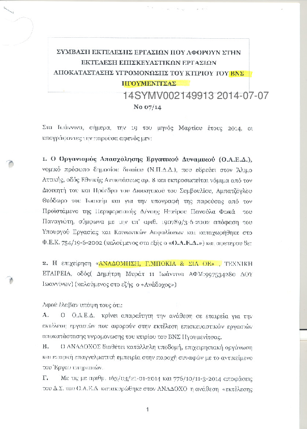 3. ΣΥΜΒΑΣΗ ΕΚΤΕΛΕΣΗΣ ΕΠΙΣΚΕΥΑΣΤΙΚΩΝ ΕΡΓΑΣΙΩΝ ΑΠΟΚΑΤΑΣΤΑΣΗΣ ΥΓΡΟΜΟΝΩΣΗΣ ΚΤΙΡΙΟΥ ΒΝΣ ΗΓΟΥΜΕΝΙΤΣΑΣ