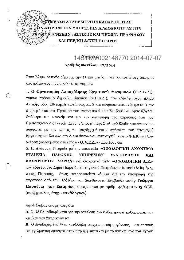 1. ΚΑΘΑΡΙΟΤΗΤΑ ΚΤΙΡΙΩΝ ΠΔ/ΝΣΕΩΝ ΑΤΤΙΚΗΣ & ΝΗΣΩΝ ΑΝ ΜΑΚΕΔΟΝΙΑΣ & ΘΡΑΚΗΣ ΚΑΙ ΔΙΟΙΚΗΣΗΣ ΟΑΕΔ