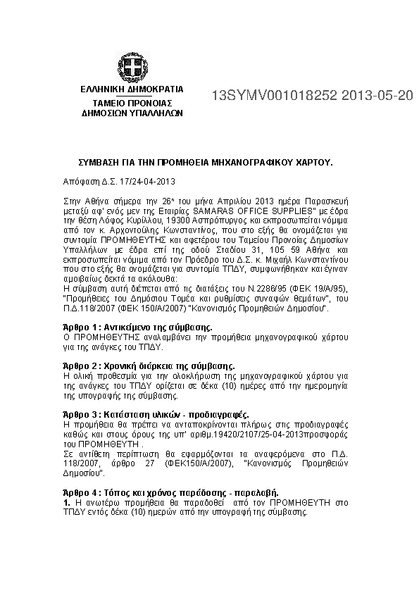 4. ΣΥΜΒΑΣΗ ΓΙΑ ΠΡΟΜΗΘΕΙΑ ΜΗΧΑΝΟΓΡΑΦΙΚΟΥ ΧΑΡΤΙΟΥ