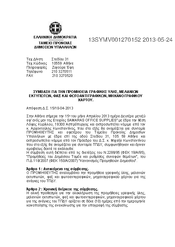 2. ΣΥΜΒΑΣΗ ΓΙΑ ΠΡΟΜΗΘΕΙΑ ΓΡΑΦΙΚΗΣ ΥΛΗΣ,ΜΕΛΑΝΙΩΝ,ΦΩΤΟΑΝΤΙΓΡΑΦΙΚΩΝ,ΜΗΧΑΝ/ΚΟΥ ΧΑΡΤΙΟΥ