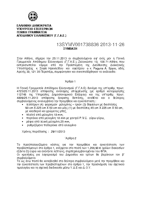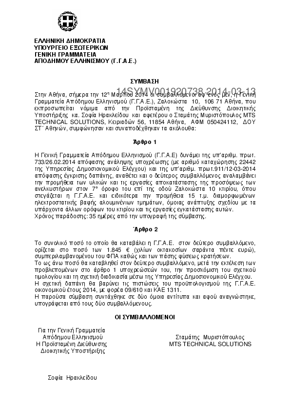 4. ΣΥΜΒΑΣΗ ΓΙΑ ΚΑΘΑΡΙΣΜΟ ΤΟΥ 7ου ΟΡΟΦΟΥ ΤΟΥ ΚΤΙΡΙΟΥ ΕΠΙ ΤΗΣ ΖΑΛΟΚΩΣΤΑ 10 ΟΠΟΥ ΣΤΕΓΑΖΕΤΑΙ Η Γ.Γ.Α.Ε.