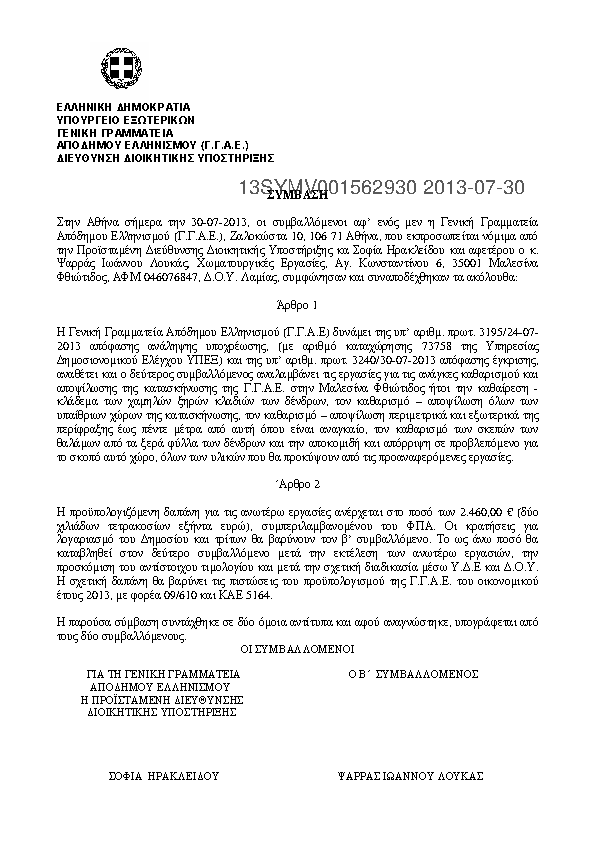 3. ΣΥΜΒΑΣΗ ΓΙΑ ΥΠΗΡΕΣΙΕΣ ΚΑΘΑΡΙΣΜΟΥ ΚΑΙ ΑΠΟΨΙΛΩΣΗΣ ΚΑΤΑΣΚΗΝΩΣΗΣ Γ.Γ.Α.Ε ΜΑΛΕΣΙΝΑΣ