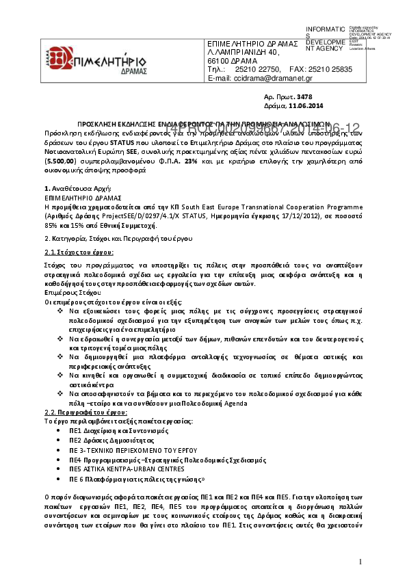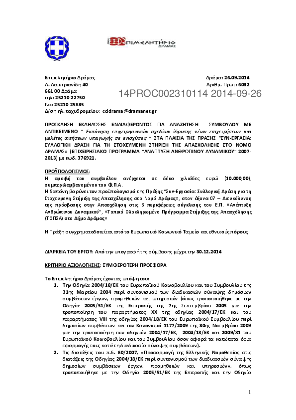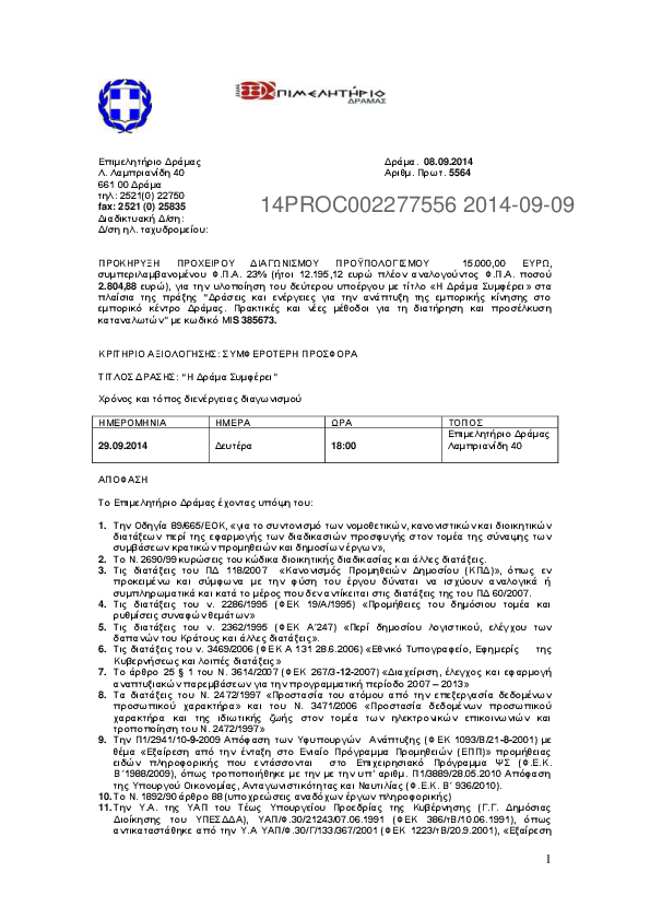 5. ΠΡΟΚΗΡΥΞΗ ΠΡΟΧΕΙΡΟΥ ΔΙΑΓΩΝΙΣΜΟΥ ΓΙΑ ΤΗΝ ΥΛΟΠΟΙΗΣΗ ΤΟΥ 2ΟΥ ΥΠΟΕΡΓΟΥ "Η ΔΡΑΜΑ ΣΥΜΦΕΡΕΙ"