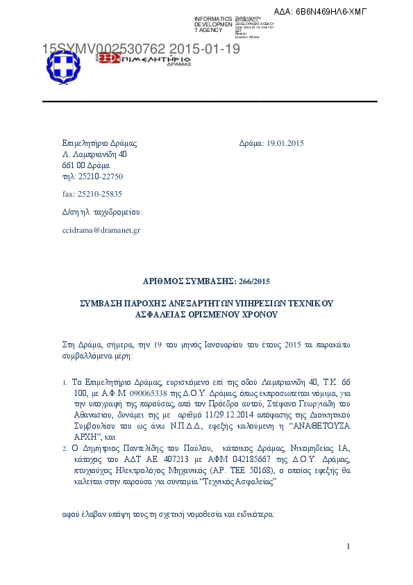 10. ΣΥΜΒΑΣΗ ΠΑΡΟΧΗΣ ΑΝΕΞΑΡΤΗΤΩΝ ΥΠΗΡΕΣΙΩΝ ΤΕΧΝΙΚΟΥ ΑΣΦΑΛΕΙΑΣ ΟΡΙΣΜΕΝΟΥ ΧΡΟΝΟΥ