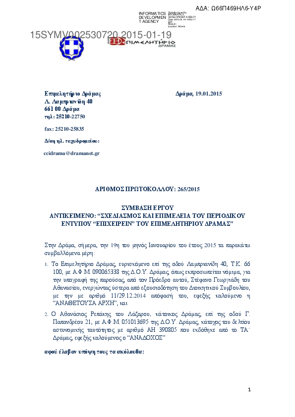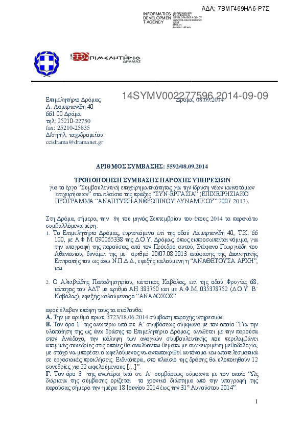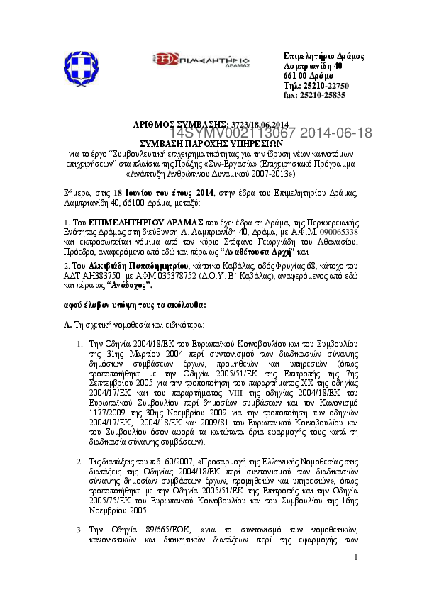 3. ΣΥΜΒΑΣΗ ΠΑΡΟΧΗΣ ΥΠΗΡΕΣΙΩΝ ΓΙΑ ΤΟ ΕΡΓΟ "ΣΥΜΒΟΥΛΕΥΤΙΚΗ ΕΠΙΧΕΙΡΗΜΑΤΙΚΟΤΗΤΑΣ ΓΙΑ ΤΗΝ ΙΔΡΥΣΗ ΝΕΩΝ ΚΑΙΝΟΤΟ