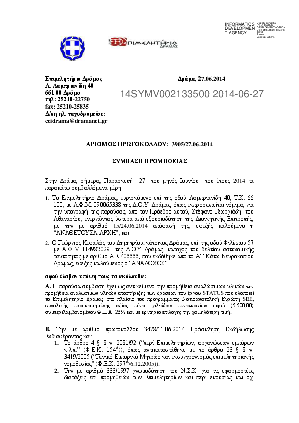 4. ΣΥΜΒΑΣΗ ΠΡΟΜΗΘΕΙΑΣ ΑΝΑΛΩΣΙΜΩΝ ΥΛΙΚΩΝ ΣΤΟ ΠΛΑΙΣΙΟ ΤΟΥ ΕΡΓΟΥ STATUS