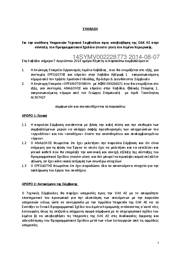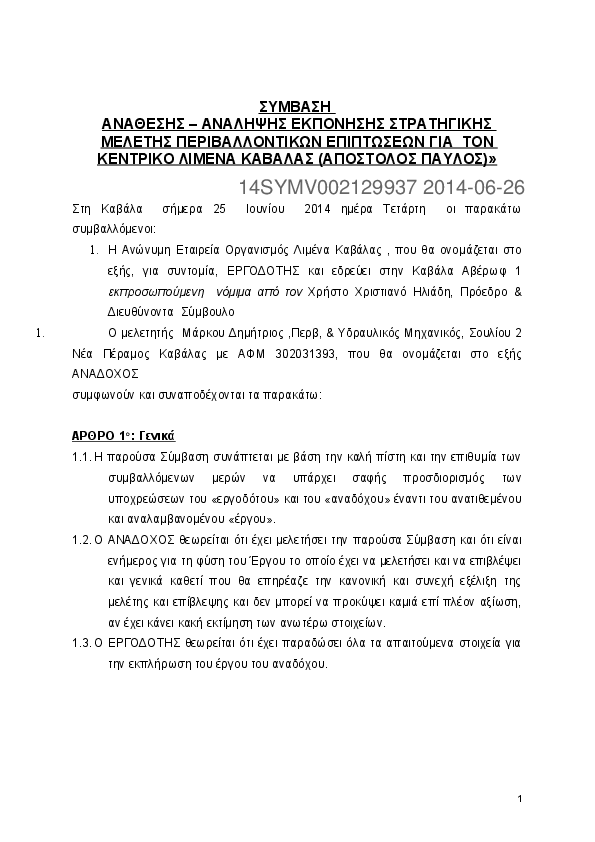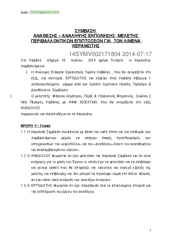 5. ΣΥΜΒΑΣΗ ΑΝΑΘΕΣΗΣ ΕΚΠΟΝΗΣΗΣ ΜΕΛΕΤΗΣ ΠΕΡΙΒΑΛ.ΕΠΙΠΤΩΣΕΩΝ ΛΙΜΕΝΑ ΚΕΡΑΜΩΤΗΣ