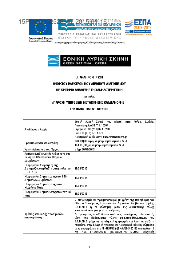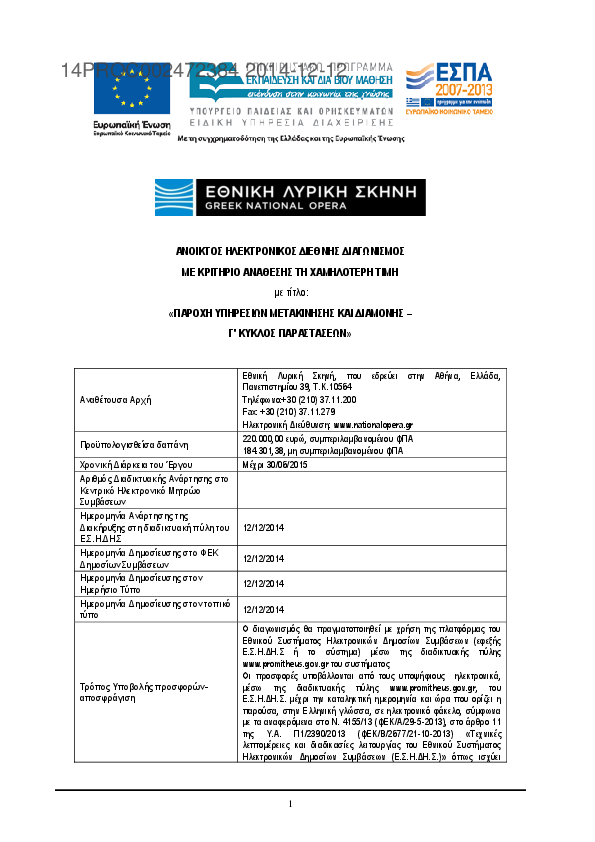 6. Ηλεκτρονικός Διεθνής Διαγωνισμός"Παροχή Υπηρεσιών Μετακίνησης&Διαμονής–Γ' Κύκλος Παραστάσεων" ΥΠ6