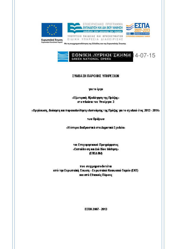 5. Εξωτερική Αξιολόγηση των Πράξεων "Η Όπερα διαδραστικά στα Δημοτικά Σχολεία"- Υποέργο 3