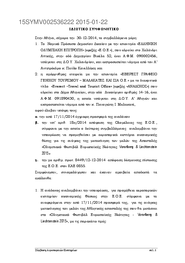 4. Προμήθεια Αεροπορικών Εισιτηρίων για το ΄΄12οΧειμερινό Ολυμπιακό Φεστιβάλ Νέων 2015΄΄