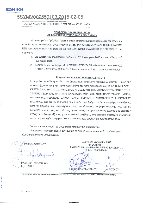 6. ασφαλιστική κάλυψη των μελών της αθλητικής αποστολής «Vorarlberg & Liechtenstein 2015»