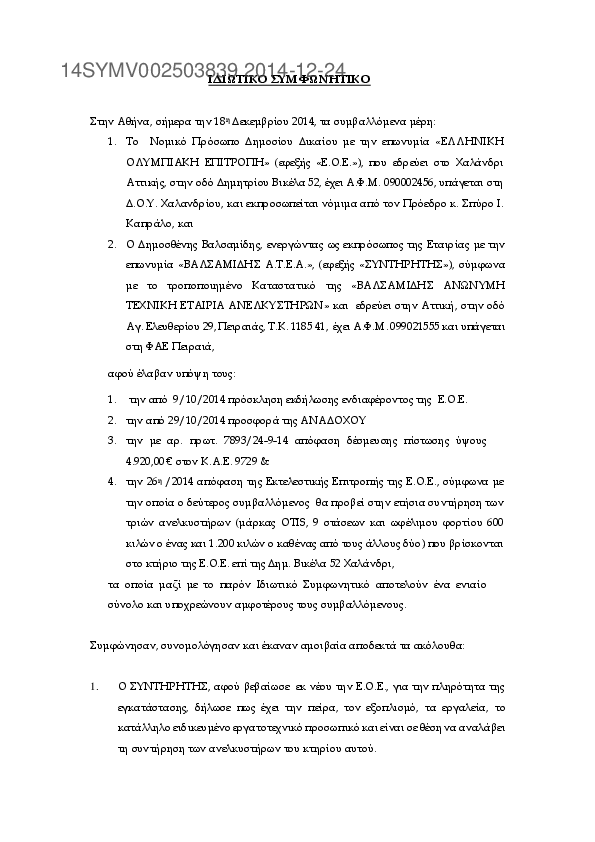 1. ΕΤΗΣΙΑ ΣΥΝΤΗΡΗΣΗ ΤΡΙΩΝ ΑΝΕΛΚΥΣΤΗΡΩΝ ΕΟΕ