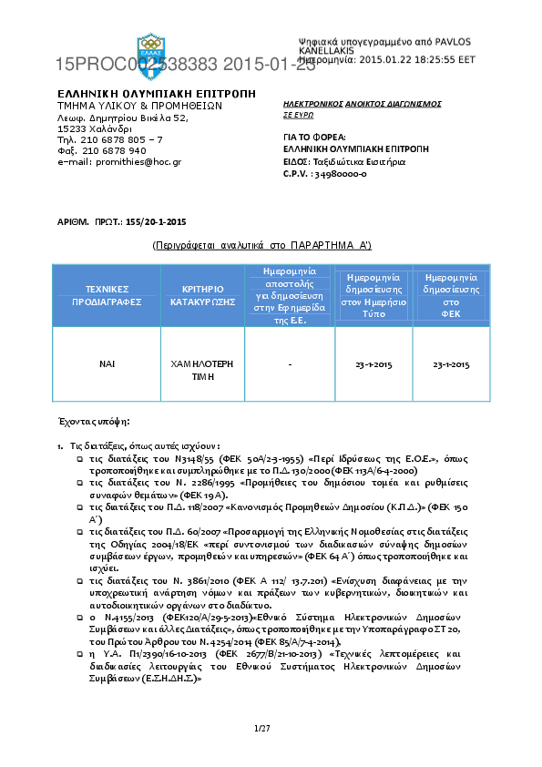 Αναζήτηση σε προκηρύξεις και συμβάσεις για: