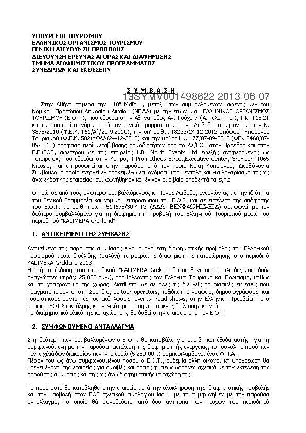3. ΔΙΑΦΗΜΙΣΤΙΚΗ ΠΡΟΒΟΛΗ ΕΟΤ ΜΕΣΩ ΔΙΣΕΛΙΔΗΣ ΚΑΤΑΧΩΡΙΣΗΣ ΣΤΟ ΠΕΡΙΟΔΙΚΟ KALIMERA GREKLAND 2013