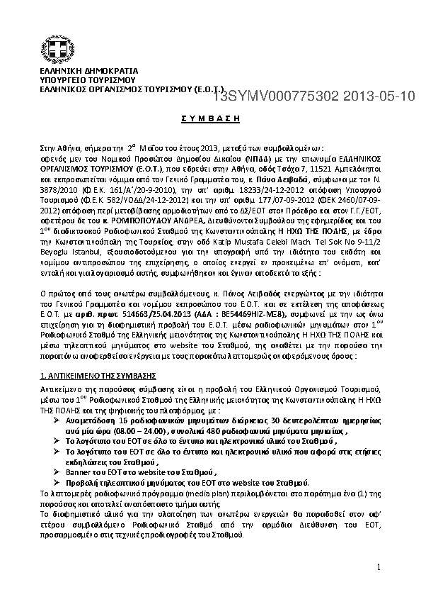 4. Οικονομική Συμμετοχή του ΕΟΤ στον Ραδιοφωνικό Σταθμό ΗΧΩ ΤΗΣ ΠΟΛΗΣ