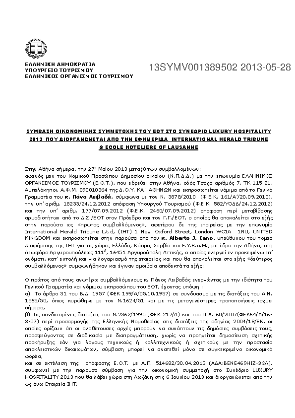7. Οικονομική συμμετοχή του Ε.Ο.Τ. στο Συνέδριο LUXURY HOSPITALITY 2013