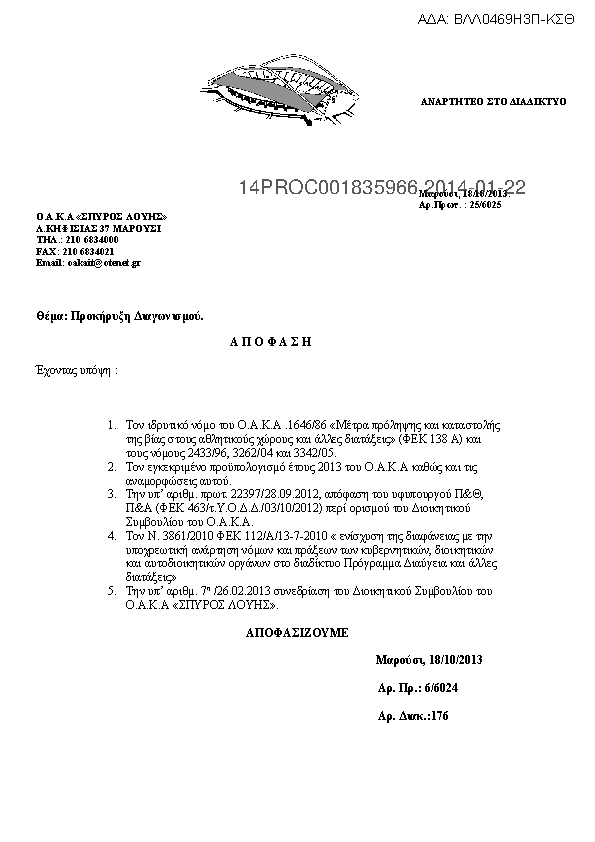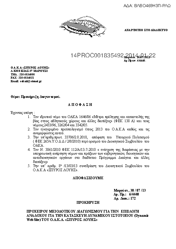 6. ΠΡΟΚΗΡΥΞΗ ΠΡΟΧΕΙΡΟΥ ΜΕΙΟΔΟΤΙΚΟΥ ΔΙΑΓΩΝΙΣΜΟΥ ΓΙΑ ΤΗΝ ΕΠΙΛΟΓΗ ΑΝΑΔΟΧΟΥ ΓΙΑ ΤΗΝ ΚΑΤΑΣΚΕΥΗ ΔΥΝΑΜΙΚΟΥ ΙΣΤΟΤΟΠΟΥ (Dynamic WebSite) ΤΟΥ Ο.Α.Κ.Α. "ΣΠΥΡΟΣ ΛΟΥΗΣ"