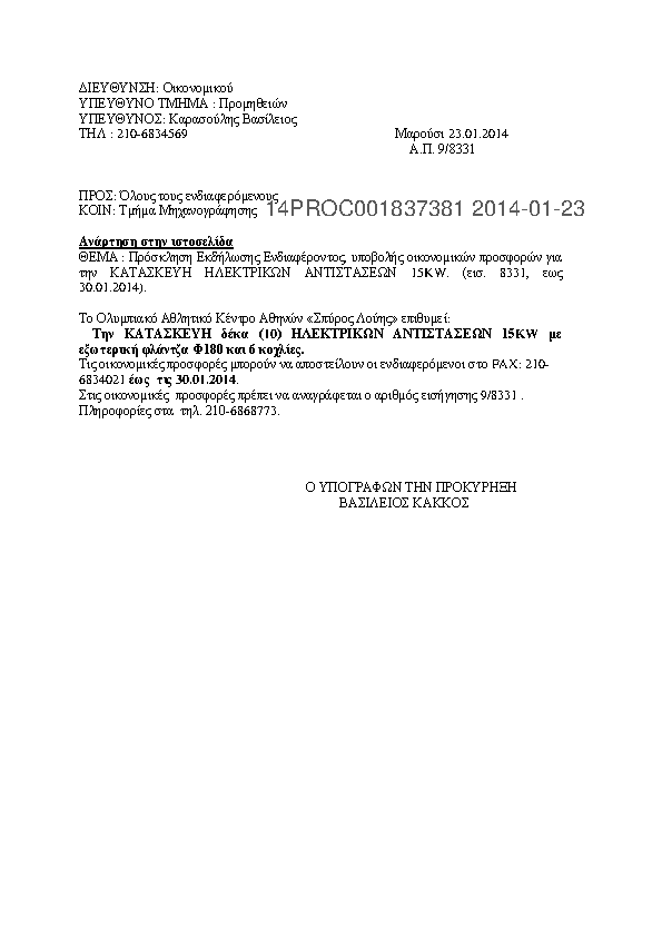 8. ΠΡΟΚΥΡΗΞΗ ΚΑΤΑΣΚΕΥΗΣ ΗΛΕΚΤΡΙΚΩΝ ΑΝΤΙΣΤΑΣΕΩΝ